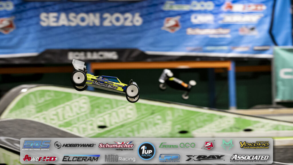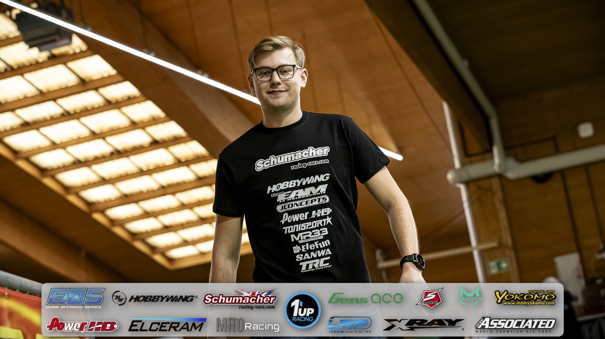 The second round of qualifying saw Q1 winner Elias Johansson starting first out of the gate. During the run, his Schumacher teammate Daniel Kobbevik was able to jump onto the driver seat when the Norwegian racer took over the lead from Michal Orlowski (fastest lap of the heat 17.748) in the last minute of the race. Marcus Kaerup was also pushing hard with his Associated buggy and the top 8 had been incredibly close all the time on the challenging track in Daun.