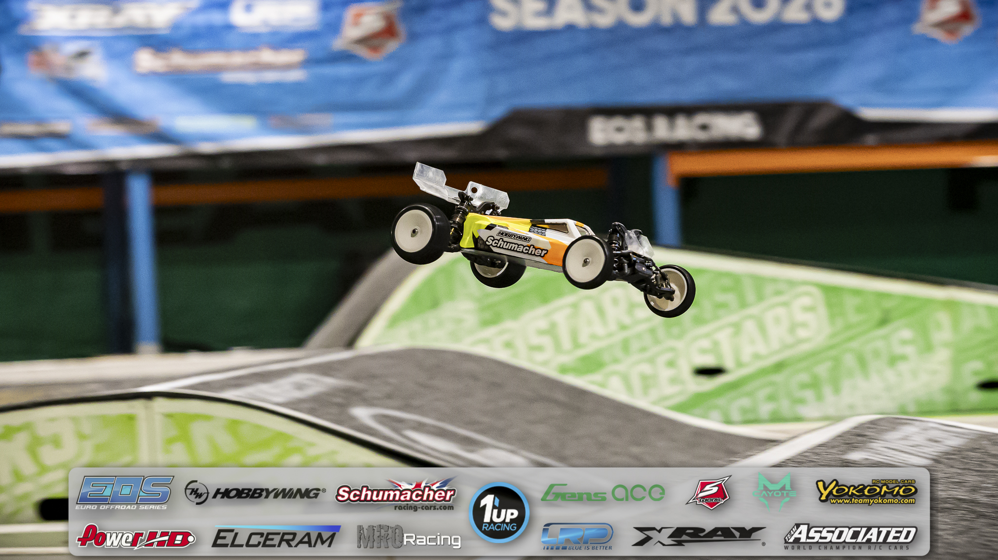 Schumacher racer Senne Pauwels has taken the opening round of the 13.5 Stock Buggy class by 6.2 seconds (!) from Mugen Seiki driver Sören Sparbier, and Simon Cermak from the Czech Republic. Frederik Hovgaard posted the fourth quickest time with his Yokomo car and Pawel Trella rounded out the top five at the end of Q1!