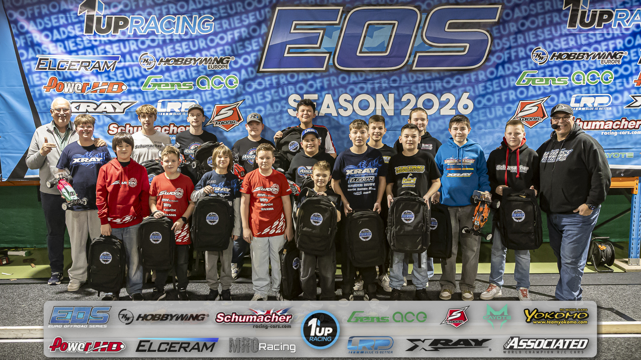 The second “event” of the event has started now and the 4WD buggies and modified Trucks are on track. Three rounds of practice followed by four rounds of qualifying on Saturday, followed by all triple finals on Sunday. The title image of this report is showing all racers born after 2011. All of them received a nice EOS backpack during yesterday`s quick 2WD top 3 trophy ceremony and we hope they will like them!