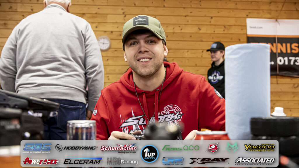 Michal Orlowski is in a great form here at the EOS in Daun. After winning 2WD yesterday, the Schumacher factory driver did not slow down and posted the fastest two consecutive laps in 4WD practice. Xray racer Bartosz Zalewski was second fastest followed by the three Schumacher Cat PB cars of Daniel Kobbevik, Ben Smith, and Elias Johansson.